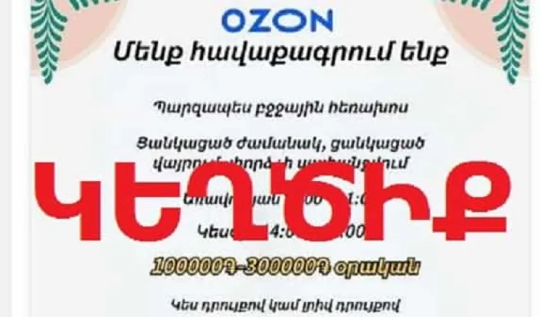 Կեղծ բովանդակությամբ հայտարարություն է տարածվում. զգուշացում