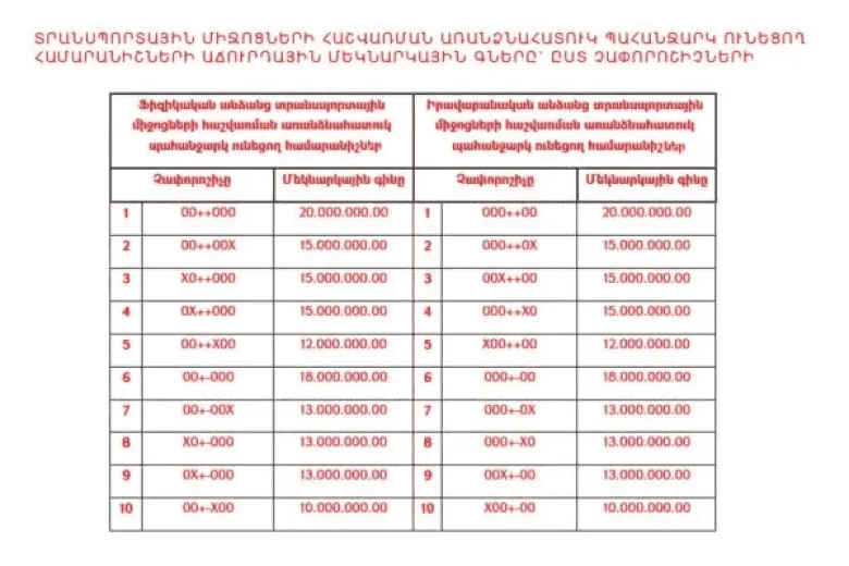 Հայտնի են զրոներով սկսվող համարանիշների գները. ցանկ (տեսանյութ)