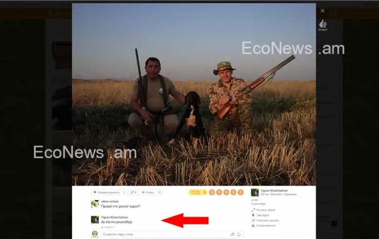 EcoNews.am բնապահպանական տեղեկատվական կայքը շարունակում է ներկայացնել ապօրինի որսի դեպքերի մասին վկայող լուսանկարներ և այլ մանրամասներ: Այս անգամ խոսքը վերաբերում է խոշոր կենդանիների որսի «իսկական սիրահար», արտասահմանաբնակ անձնավորությանը, ով սիրում է ժամանակ առ ժամանակ վերադառնալ հայրենիք և զբաղվել «արգելված որսով», այդ թվում նաև Կարմիր գրքում գրանցված կենդանիների: