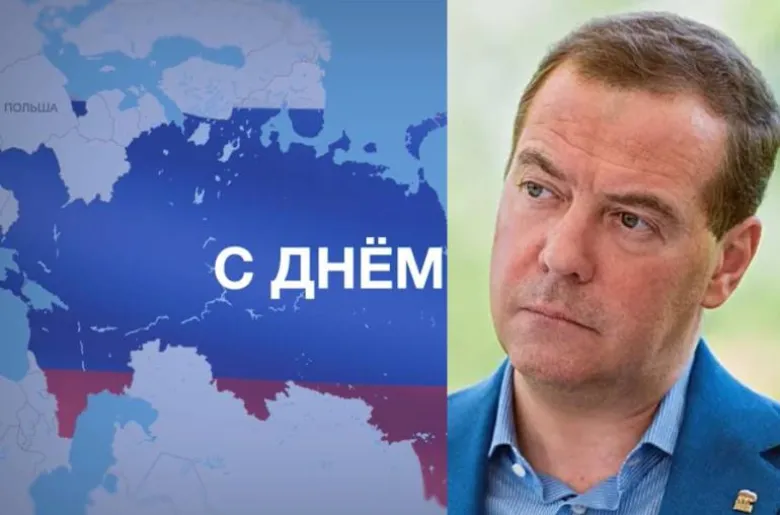 ՌԴ Անվտանգության խորհրդի փոխնախագահ Դմիտրի Մեդվեդևը թելեգրամյան ալիքում համերկրացիներին շնորհավորել է Ռուսաստանի օրվա կապակցությամբ՝ հրապարակելով անիմացիոն քարտեզ, որտեղ ՌԴ-ի պետական դրոշի գույներով է ներկվել նաև հարևան Ուկրաինան: Այս մասին գրում է ՏԱՍՍ-ը: