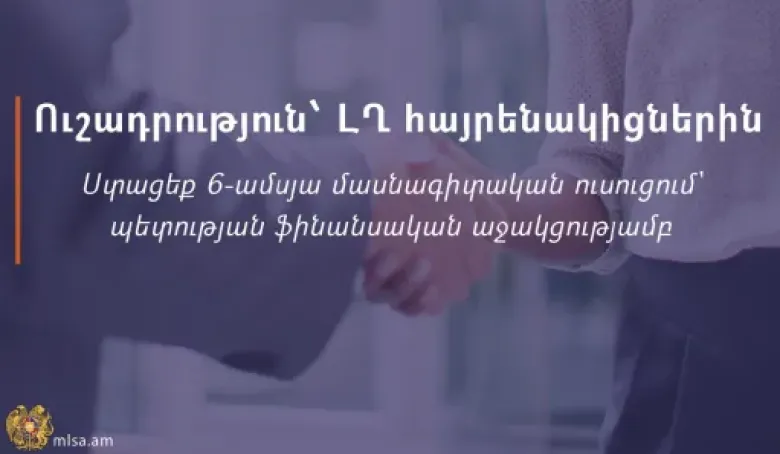 Ծրագրից կարող են օգտվել 2023 թ․ սեպտեմբերին ԼՂ-ից բռնի տեղահանված այն անձինք, ովքեր հաշվառված են Միասնական սոցիալական ծառայության տարածքային կենտրոններում, ունեն գործազուրկի կարգավիճակ և վերջին մեկ ամսվա ընթացքում չեն հանդիսացել հարկ վճարող աշխատող։ Ծրագրի շրջանակում շահառուին կտրվի ամսական առավելագույնը 50.000 դրամ՝ ուսման վարձի փոխհատուցման համար և 50.000 դրամի չափով կրթաթոշակ։