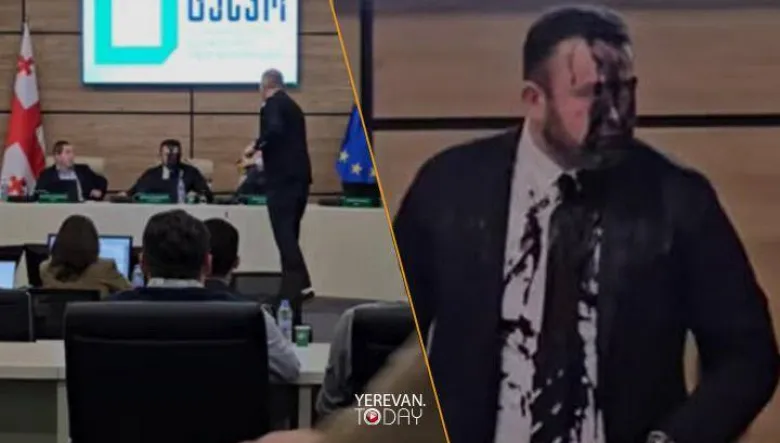 Ընդդիմադիր Դավիթ Կիրթաձեն մոտեցել է սեղանին ու սև հեղուկ լցրել Գեորգի Կալանդարիշվիլիի դեմքին։