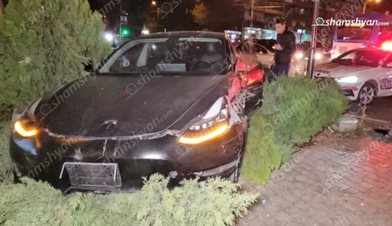 Բախման հետևանքով էլ «Tesla»-ն բախվել է բազալտե եզրաքարերին և հայտնվել կանաչ գազոնում` բախվելով ծառին: