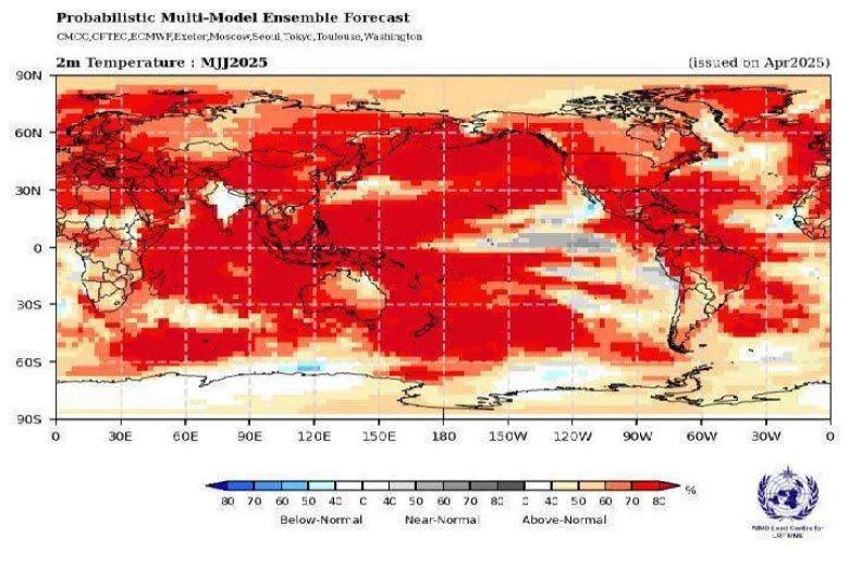 «Հիդրոօդերևութաբանության և մոնիթորինգի կենտրոն» ՊՈԱԿ-ի տնօրեն Լևոն Ազիզյանը ֆեյսբուքյան իր էջում գրում է․ «Համաշխարհային օդերևութաբանական կազմակերպությունը (ՀՕԿ) թարմացրել է 2025 թվականի մայիս-հունիս-հուլիս ամիսների գլոբալ սեզոնային կանխատեսումը։