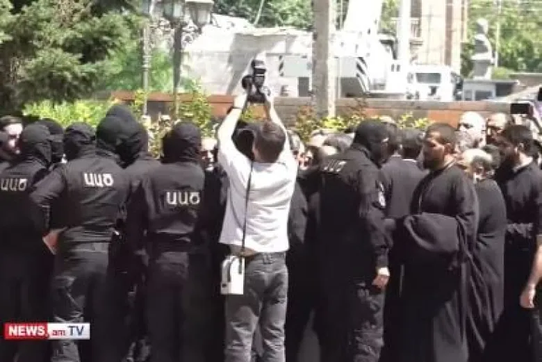 Նշենք, որ բազմաթիվ դիմակավորված ԱԱԾ–ականներ քիչ առաջ մտել են Մայր Աթոռ Սուրբ Էջմիածնի վեհարան։ Նրանք եկել են ձերբակալելու Շիրակի թեմի առաջնորդ Միքայել արքեպիսկոպոս Աջապահյանին։