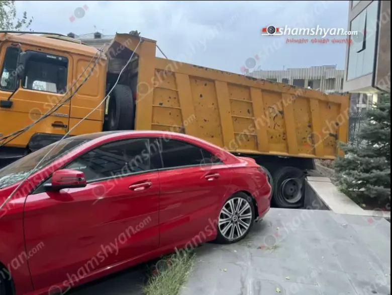 Երևանում հողով բարձված բեռնատարը բախվել է բետոնե էլեկտրասյանը, ապա «Mercedes»-ին և «Volkswagen»-ին