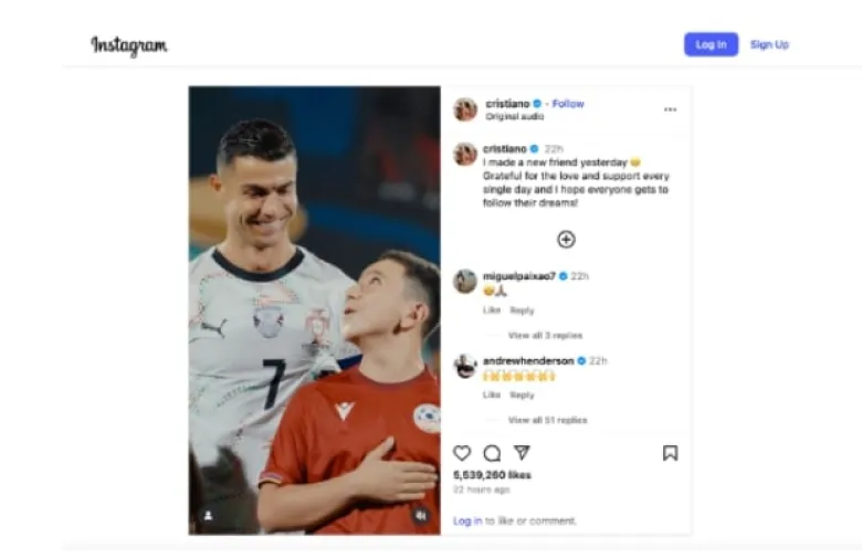 Հենց խաղից մեկ օր անց Ռոնալդուն իր ինստագրամյան էջում հրապարակեց Ռուբենի հետ տեսահոլովակն ու գրեց․ «Ես նոր ընկեր ձեռք բերեցի»։ Հոլովակն արդեն հինգ միլիոնից ավելի մարդ է հավանել, իսկ մեկնաբանություններում հարյուր հազարավոր մարդիկ գրել են, որ այն իրենց խորապես հուզել է։