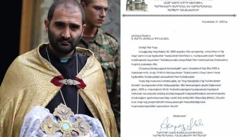 Նա գրել է․ «Սիրելինե՛ր, վաղը՝ նոյեմբեր 4-ին, ժամը 15:00-ին կանչվել եմ Մայր Աթոռ Սուրբ Էջմիածին՝ հանդիպելու կարգապահական հանձնախմբին»: