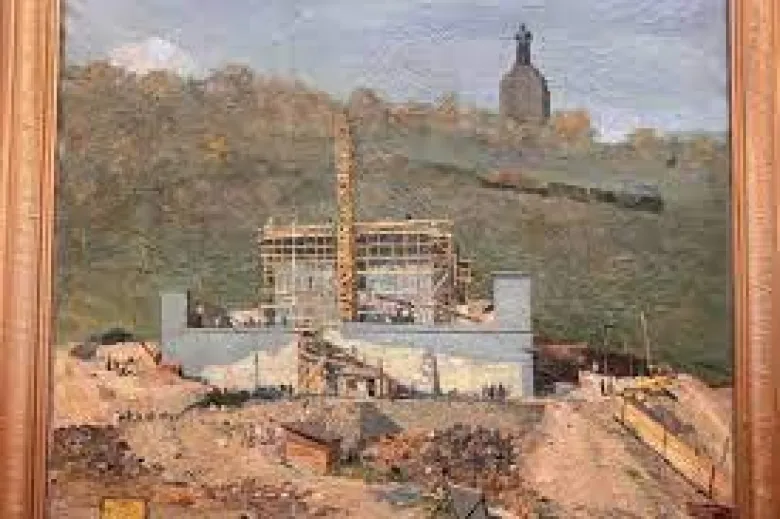 «Մատենադարանի՝ որպես գիտահետազոտական ինստիտուտ հիմնադրման վերաբերյալ նյութերը սակավաթիվ են։ Կտավը կառույցի շինարարության վաղ փուլը պատկերող հազվագյուտ նմուշներից է։