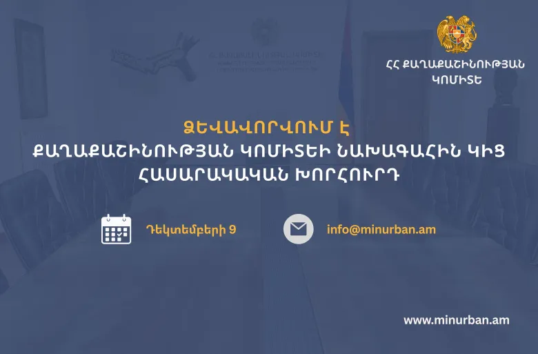 Կարևորելով հանրության հետ երկխոսության ու քաղաքացիական հասարակության հետ համագործակցության ամրապնդումը՝ Քաղաքաշինության կոմիտեն առաջարկում է խորհրդի կազմում ընդգրկվելու ցանկություն ունեցողներին անդամակցության հայտը և անհրաժեշտ փաստաթղթերն ուղարկել [email protected] էլ. հասցեին մինչև 2025 թվականի դեկտեմբերի 9-ը՝ ժամը 18։00-ն։