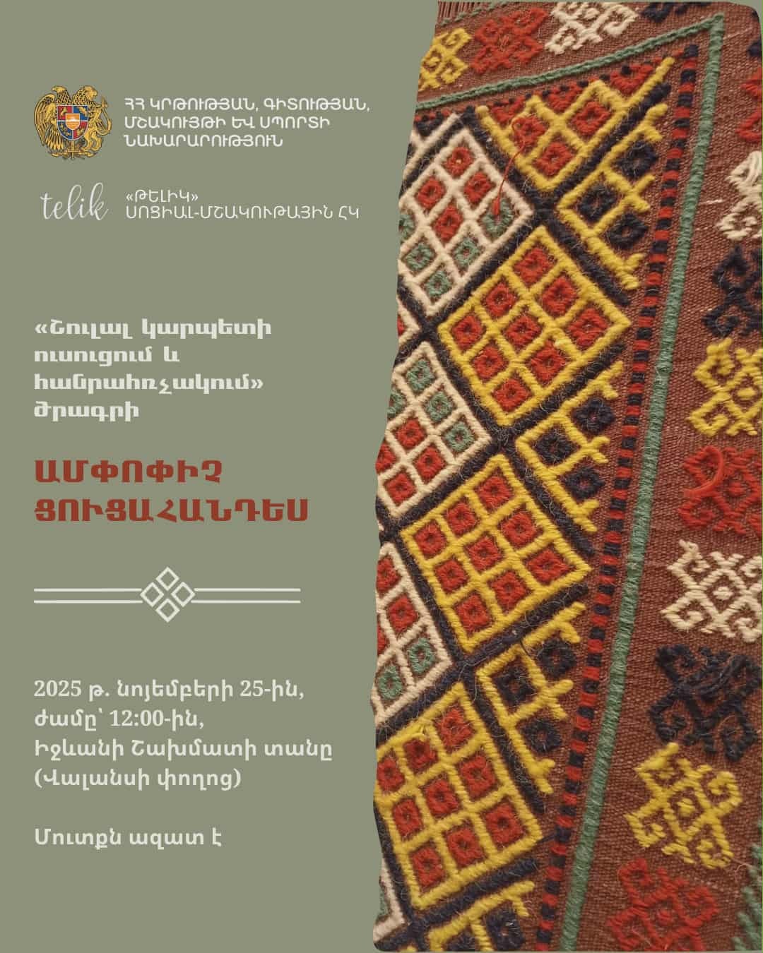 ԿԳՄՍ նախարարության ֆինանսական աջակցությամբ և «Թելիկ» սոցիալ-մշակութային հասարակական կազմակերպության նախաձեռնությամբ իրականացվել է «Շուլալ կարպետի ուսուցում և հանրահռչակում» ծրագիրը: