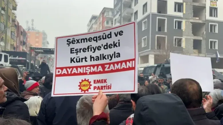 Հավաքվածները «Ռոժավային (խմբ.՝ Սիրիայի հյուսիս-արևելք) տեր կանգնելը նշանակում է տեր լինել մարդկությանը» գրությամբ ցուցանակներով շրջել են քրդաբնակ թաղամասերով և վանկարկել՝ «Մարդասպան HTŞ, կեցցե՛ Շեյխ Մակսուդի պայքարը, Ջին-Ջիյան-Ազադի (քրդերեն՝ Jin Jiyan Azadi: Նշանակում է՝ կին, կյանք, ազատություն)»:
