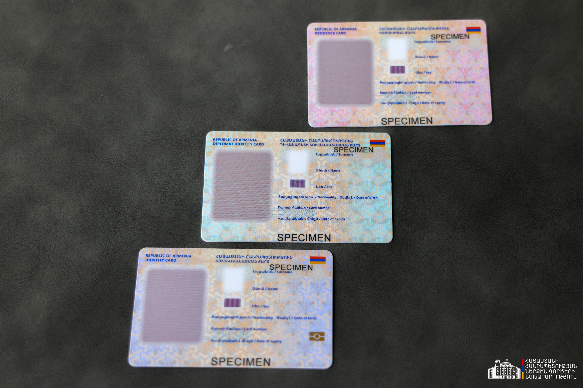 Արդեն հաստատված են օտարերկրացիների նույնականացման քարտերի օրինակները․ մասնավորապես՝ կացության կարգավիճակի, բնակության օրինականությունը հավաստող և օտարերկրյա դիվանագետի քարտերը։