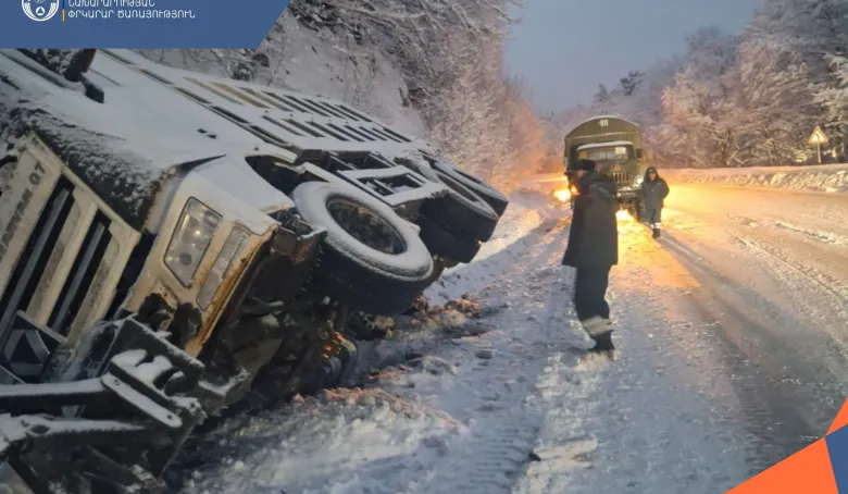 Պարզվել է, որ ճանապարհը սպասարկող ընկերության Man Van մակնիշի ավտոմեքենան ճանապարհի մաքրման աշխատանքներ իրականացնելիս կողաշրջվել է. տուժածներ չկան: