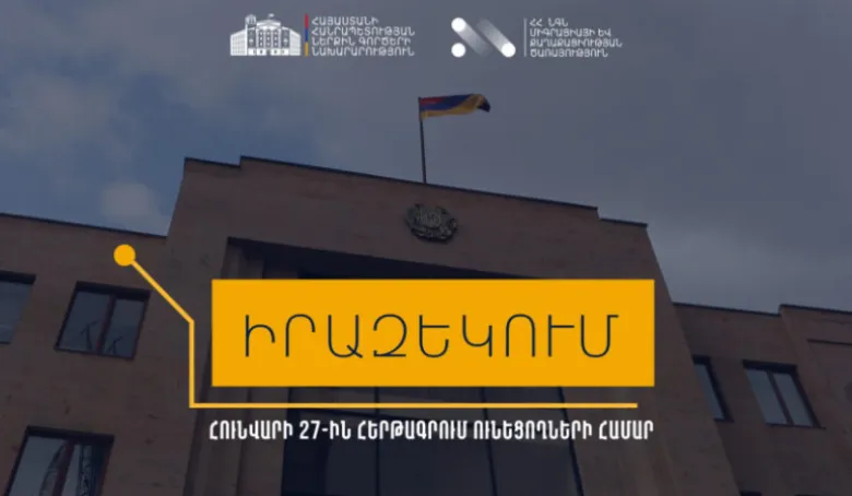 Հունվարի 27-ին Միգրացիայի և քաղաքացիության ծառայության կողմից մատուցվող ծառայությունների համար նախապես հերթագրված անձինք (ինչպես migration.e-gov.am հարթակի, այնպես էլ EarlyOne հավելվածի միջոցով) կսպասարկվեն 2026 թվականի հունվարի 24-ին՝ շաբաթ օրը։