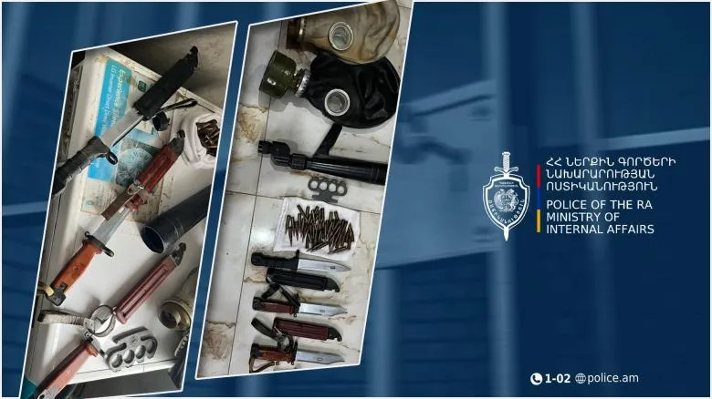 Նախաձեռնվել է քրեական վարույթ, որի շրջանակում կատարված զննությամբ 60-ամյա տղամարդու տանը՝ մետաղյա պահարում, հայտնաբերել են կռփազենք, 5,45 մմ տրամաչափի ինքնաձիգի 45 փամփուշտ, սվին-դանակներ, հակագազեր, հեռադիտակ: