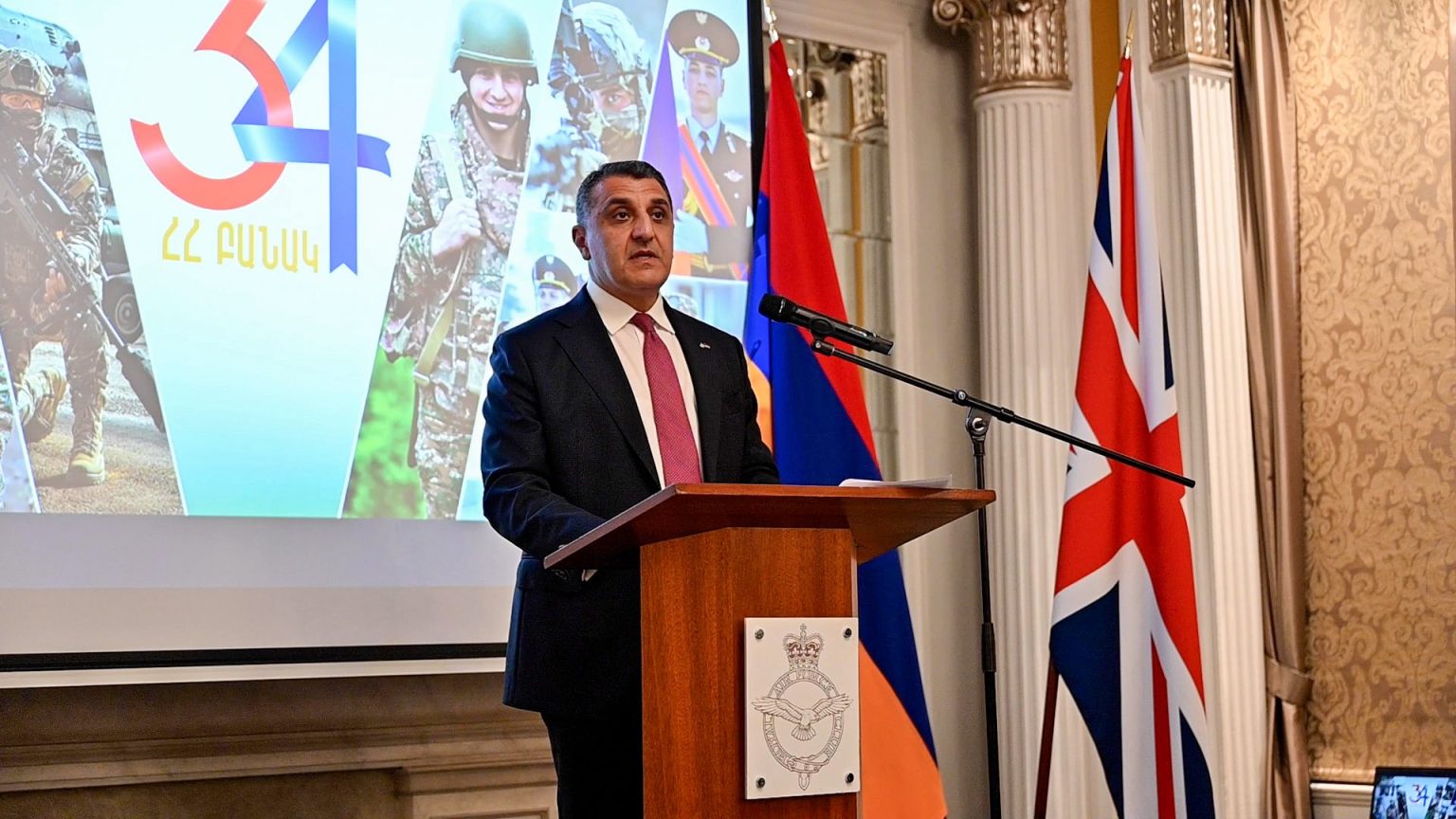 Իր խոսքում դեսպան Վարուժան Ներսեսյանը նշել է, որ Միացյալ Թագավորությունում առաջին անգամ է Հայկական բանակի օրվան նվիրված ընդունելություն կազմակերպվում։ Նա ընդգծել է հայ-բրիտանական հարաբերություններում առկա առաջընթացը՝ հիշեցնելով երկկողմ կապերը ռազմավարական գործընկերության մակարդակի բարձրացնելու համաձայնագիրը և պաշտպանության բաժինների փոխադարձ բացումը երկու դեսպանատներում՝ որպես համագործակցության խորացման հստակ ապացույց: