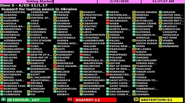 «Աջակցություն Ուկրաինայում երկարատև խաղաղությանը» վերտառությամբ բանաձևը ստացել է 107 կողմ, 12 դեմ ձայն։