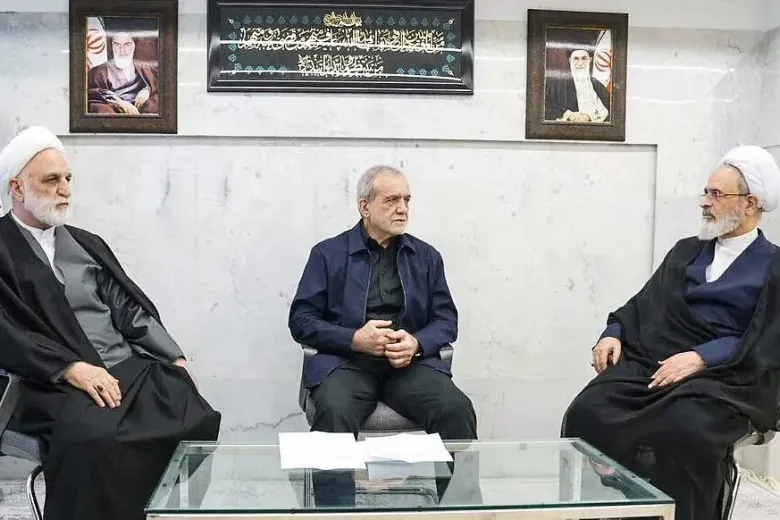Առաջնորդների խորհրդի կազմում են նախագահ Մասուդ Փեզեշքիանը, դատական իշխանության ղեկավար Ղոլամ Հոսեյն Մոհսենի Էջեհին և հոգևորական այաթոլլա Ալի Ռեզա Արաֆին։