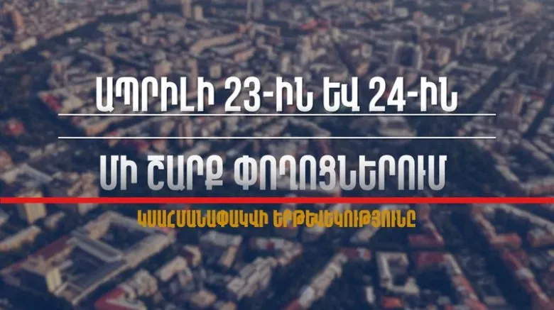Իրազեկում․ ապրիլի 23-ին և 24-ին մի շարք փողոցներում կսահմանափակվի երթևեկությունը