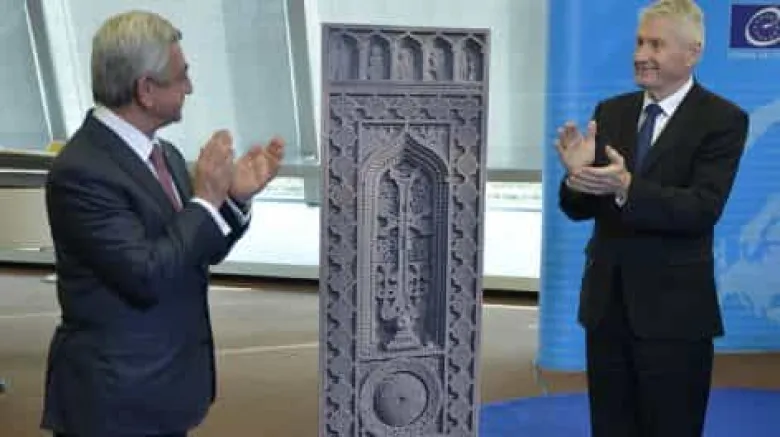 Սերժ Սարգսյանի անունից ԵԽ-ին հայկական խաչքար են նվիրաբերել