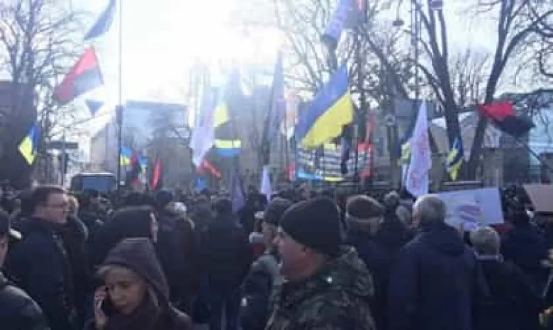 Ցույց Կիևում. Պատգամավորները պահանջում են չեղարկել առևտուրը Դոնեցկի եւ Լուգանսկի հետ