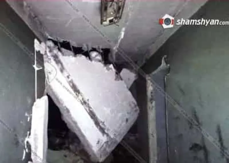 Պարզվել է, որ փլուզվել է թիվ 7 կիսաքանդ շենքի 4-րդ եւ 3-րդ հարկերի ծածկի պանելային հատվածը (մոտ 30 քմ):