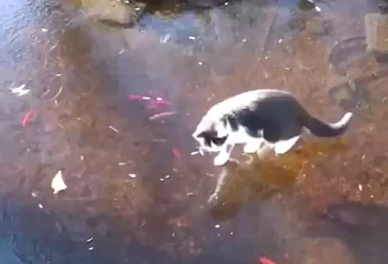 Ինչպես էր կատուն ձուկ բռնում սառած ջրում (Տեսանյութ)