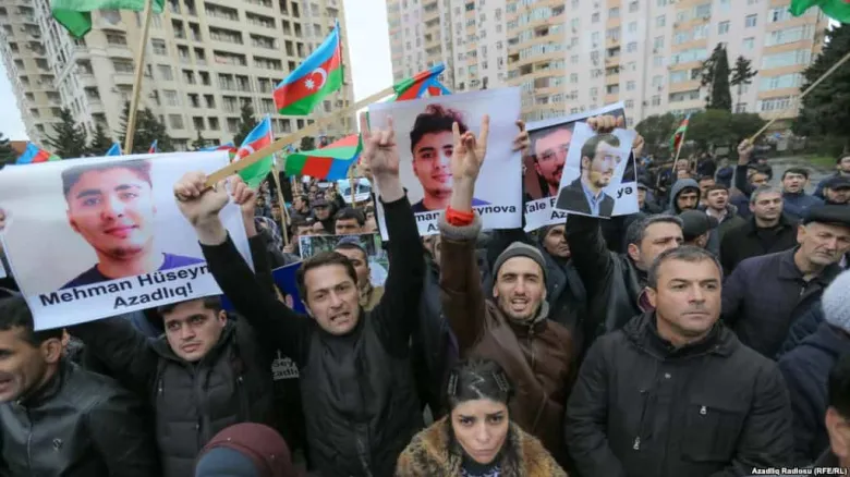 Դեմոկրատական ուժերի ազգային խորհրդի ու «Մուսավաթ» կուսակցության աջակիցները հանրահավաքի են եկել Ադրբեջանի դրոշներով, քաղբանտարկյալների նկարներով ու Ալիևի ավտորիտար կառավարումը դատապարտող կոչերով։