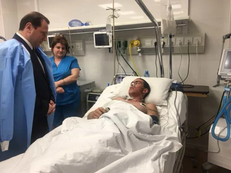 Քիչ առաջ ՀՀ պաշտպանության նախարար Դավիթ Տոնոյանը այցելեց կենտրոնական հոսպիտալ։ Նախարարը առաջին հերթին հանդիպեց սույն թվականի մայիսի 13-14 ի գիշերը Արցախում վիրավորված Շամխալ Սեյրանի Պետրոսյանին, ով արդեն ունի հստակ գիտակցություն։ Նախարար Դ.Տոնոյանը զրուցեց վիրավոր Շ. Պետրոսյանի հետ, ով կամենում էր շուտ ապաքինվել և վերադառնալ ծառայության։ Նա հպարտությամբ նշեց, որ իր կյանքը նախ փրկել է իր զինակից, ՀՀ ՊՆ հատուկ դասընթացներ անցած զինվոր, սանհրահանգիչը օգտագործելով «Armenian wounded heroes fund» հիմնադրամի տրամադրած առաջին բուժ օգնության փաթեթները։