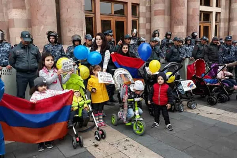 Իր հերթին Հայաստանի Աշխատանքի եւ սոցիալական հարցերի նախարարության ընտանիքի, կանանց եւ երեխաների հարցերով վարչության ղեկավար Գեղանուշ Գյունաշյանը նշեց, որ սայլակներով փոքր երեխաներով կանայք ցույցերին չեն մասնակցել առաջին օրերից, այլ միայն ժամանակ, երբ համոզվեցին, որ ցույցերը խաղաղ են եւ երեխաներին հետ նարնց ոչինչ չի սպառնում: