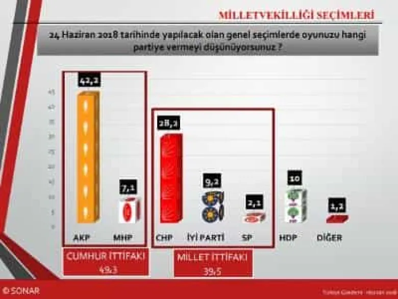 Թուրքական SONAR հետազոտական–վերլուծական ընկերությունը Թուրքիայի խորհրդարանական եւ նախագահական ընտրությունների արդյունքների վերաբերյալ սոցհարցումներ է իրականացրել։