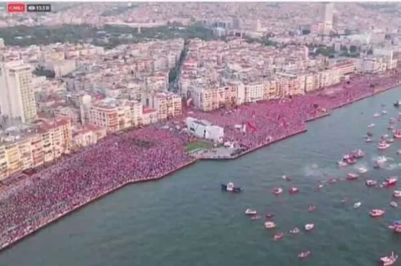 Թուրքիայի Իզմիր քաղաքում հարյուր հազարավոր մարդիկ ցույցի են դուրս եկել՝ աջակցելու ընդդիմադիր քաղաքական գործիչ Մուհարեմ Ինջեին, որը ներկայացնում է Ժողովրդական հանրապետական կուսակցությունը: