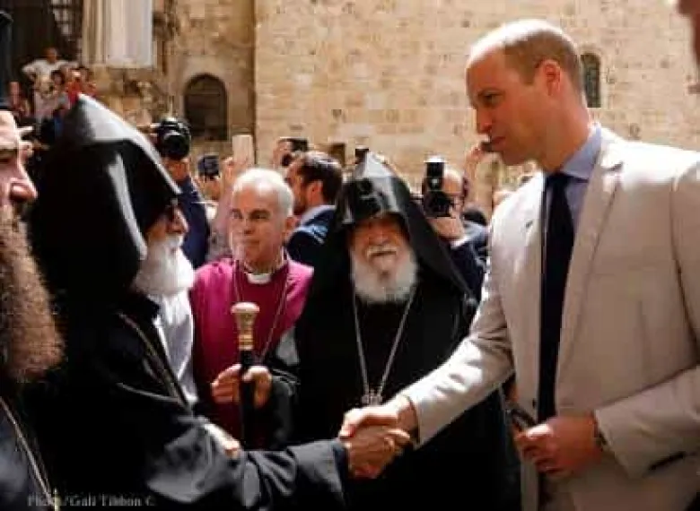 Սուրբ Հարության տաճարում Ս. Արևմաթացու հայկական մատուռ այցի ընթացքում արքայազն Ուիլիամին ողջունել է տաճարի հայ տեսուչ Սամուել Ծայրագույն Վարդապետ Աղոյանը և Պատրիարքարանի անունից նրան նվիրել հայկական խաչ: