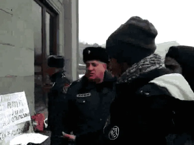 Նա նշեց, որ ոստիկանները պահանջել են, որ նստացույցի մասնակիցները Ազատության հրապարակում եղած իրերը հավաքեն՝ պատճառաբանելով, թե Ա. Սպենդիարյանի անվան օպերայի եւ բալետի ազգային ակադեմիական թատրոնը պատմամշակութային նշանակության շենք է եւ դրա տարածքը պետք է մաքուր լինի: