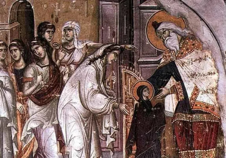 Կույսի ծնողները` Հովակիմն ու Աննան երկար ժամանակ երեխա չէին ունենում, քանի որ վերջինս ամուլ էր: Եվ մի օր, երբ Աննան իջնում է պարտեզ՝ աղոթելու, հանկարծ հայտնվում է Տիրոջ հրեշտակը եւ ավետում, որ զավակ է ունենալու, ում երանի են տալու բոլոր ազգերը: Աննան գոհություն է հայտնում Աստծուն, որ լսեց իր անդադրում աղոթքներն ու խղճաց իրեն: