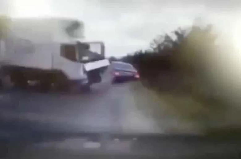 Ինչպես երևում է հրապարակված տեսանյութում՝ մեքենան բախվել է բեռնատարի և բավականին լուրջ վնասներ կրել։