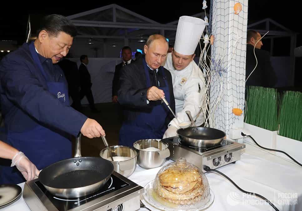 Ռուսաստանի Դաշնության նախագահ Վլադիմիր Պուտինը և Չինաստանի ղեկավար Սի Ծինպինը Արևելյան տնտեսական համաժողովի շրջանակներում տեղի ունեցած բանակցություններից հետո այցելել են «Հեռավոր Արևելքի փողոցներ» ցուցահանդես, որտեղ անձամբ բլիթներ են պատրաստել սև և կարմիր խավիարով: