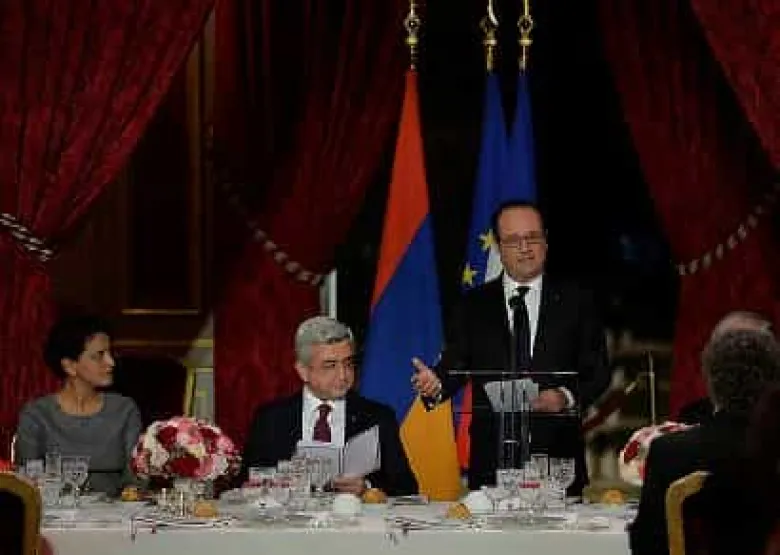 Խաղաղ եւ ապահով ապագա կառուցելու համար մենք պարտավոր ենք շարունակելու մեր ջանքերը Լեռնային Ղարաբաղի հիմնախնդիրը կարգավորելու գործում: Այս մասին մարտի 8-ին Հայաստանի Հանրապետության Նախագահ Սերժ Սարգսյանի պատվին տրված պաշտոնական ճաշի ժամանակ իր բաժակաճառում ասել է Ֆրանսիայի Հանրապետության նախագահ Ֆրանսուա Օլանդը՝ անդրադառնալով Արցախի հիմնախնդրին: