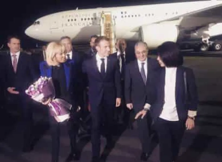 Ֆրանսիայի նախագահ Էմանուել Մակրոնը կնոջ՝ Բրիջիթ Մակրոնի հետ կեսգիշերին մոտ ժամանել է Երեւան։