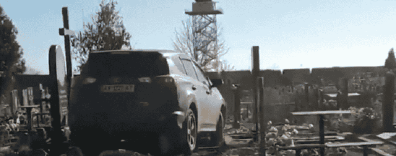Ֆիքսված կադրերում երևում է նաև, որ մեքենան կանգնում է ուղիղ շիրիմների վրա: