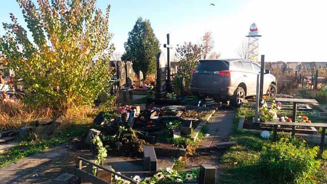 Ուկրաինացի քահանան մեքենայով անցել է շիրիմների վրայով (լուսանկարներ, տեսանյութ)