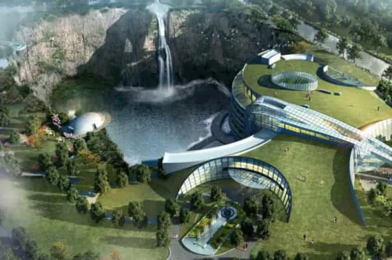 Ինչպես ներկայացնում է Life.ru-ն, արտասովոր շենքը, որը գտնվում է Շանհայի մոտակայքում, կառուցվել է լքված քարհանքի տարածքում և շրջապատված է ելճով: Հյուրանոցը, որի շինարարությունը 10 տարի է տևել, դռները հյուրերի առաջ կբացի դեկտեմբերի 1-ին: Մեկ տեղանոց համարում մեկ գիշերակացի արժեքը կկազմի 480 դոլար: