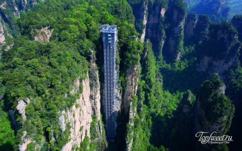 Չինաստանի Չժանցզյացզե ազգային պարկում գտնվող «Բայլուն» վերելակը (թարգմ.՝ Հարյուր վիշապների վերելակ) աշխարհում ամենաբարձրն է: Այն զբոսաշրջիկներին բարձրացնում է 330 մ բարձրության վրա գտնվող դիտահարթակ, որտեղից հիանալի տեսարան է բացվում: Վերելակը բաղկացած է 3 երկհարկանի խցիկներից, որոնց բեռնունակությունը կազմում է 3750կգ: 1 խցիկում միաժամանակ կարող է տեղավորվել 48-50 ուղևոր: