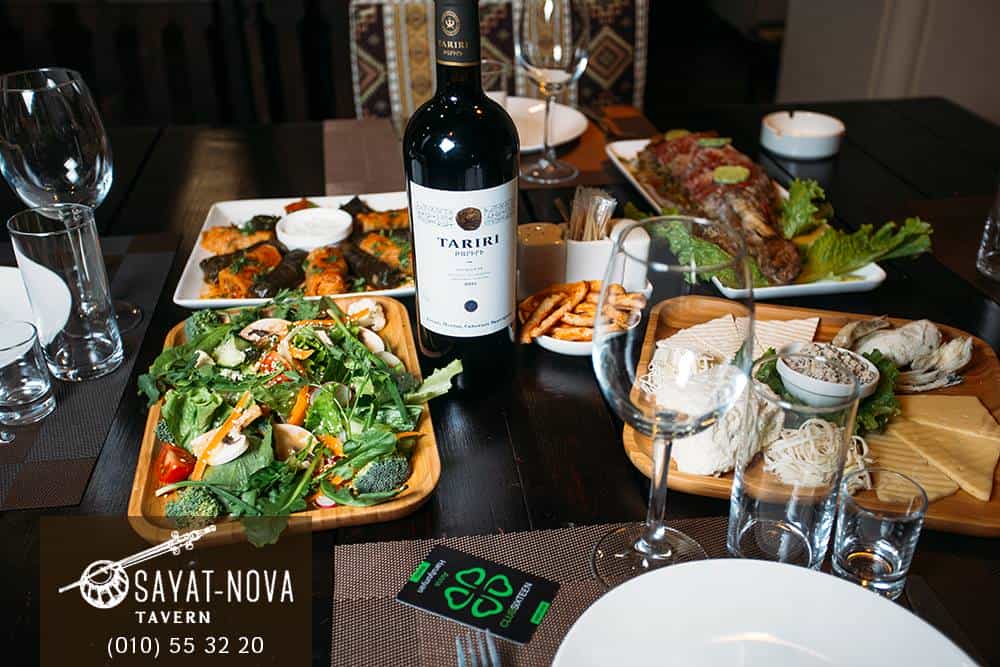 Սայաթ-Նովա պանդոկի ճաշացանկը հարուստ է և բազմազան: Ամենատարբեր համերին նախապատվություն տվողները կգտնեն իրենց քիմքին հաճելի տարբերակը: Էկոլոգիապես մաքուր, միայն բարձորակ հումքից պատրաստված սնունդ և հմուտ խոհարարի հետաքրքիր գաղափարներ, որոնք կյանքի են կոչվում ձեզ համար. «Մեր ճաշացանկը համային և տեսակային մեծ բազմազանություն է ներկայացնում: Սայաթ-Նովա պանդոկից ամենատարբեր համային նախընտրություններ ունեցողները բավարարված և գոհ են հեռանում: Մենք ունենք հատուկ ճաշացանկ փոքրիկների համար, որի շնոհիվ մեզ վստահում են փորձառու մայրիկները: Տոնական յուրաքանչյուր առիթի համար՝ հաճախորդի ցանկությամբ, կազմվում է անհատական ճաշացանկ: Մեր համերը չեն կրկնվում ոչ մի տեղ, իսկ մեր մատուցումը աչք է շոյում»,- նշում է Սայաթ-Նովա պանդոկի համահիմնադիր Գայանե Աբրահամյանը: