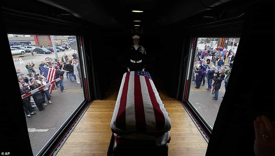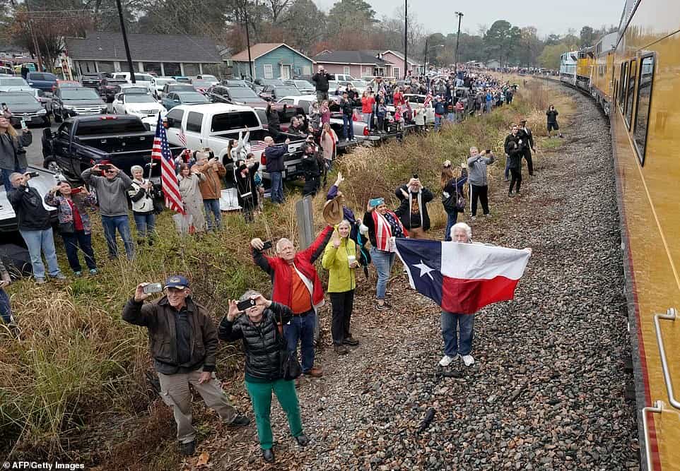 Հազարավոր ամերիկացիներ, շատերը՝ երկրի պետական դրոշը ձեռքում պահած, հավաքվել են երկաթգծի երկայնքով ու ծափահարություններով ճանապարհել ԱՄՆ 41-րդ նախագահ Ջորջ Բուշ ավագի դին տեղափոխող հատուկ գնացքը: