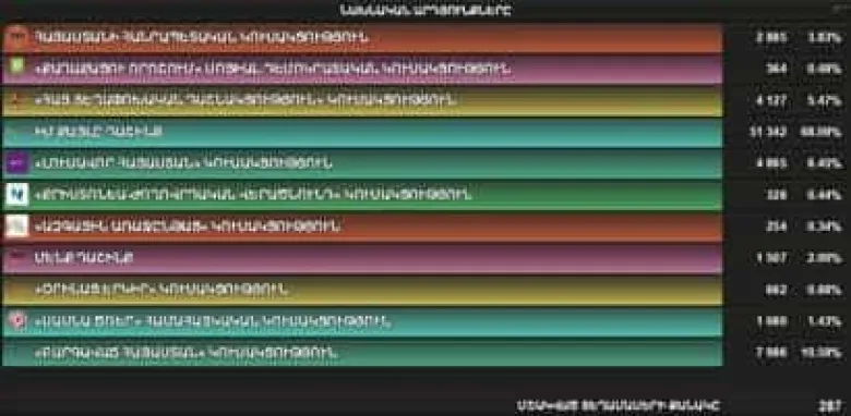 Հայ Հեղափոխական Դաշնակցությունը՝ ձայների 5,47 տոկոսով (4127 ձայն) իջել է չորրորդ հորիզոնական։