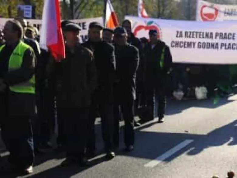 Սակայն, Լեհաստանում բողոքների պատճառը նույնը չէ, ինչ Ֆրանսիայում։ Բողոքի մասնակիցները գյուղացիներն են, որոնք փոխհատուցում են պահանջում ժանտախտի սպառնալիքով պայմանավորված սպանդի ենթարկված խոզերի համար։