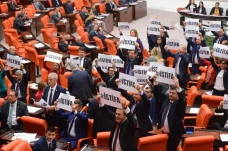 Ժողովրդադեմոկրատ պատգամավորները միասին ակցի են անցկացրել Մեջլիսի նիստերի սրահում՝ պարզելով «Հրաժարական» գրությամբ պաստառներ: