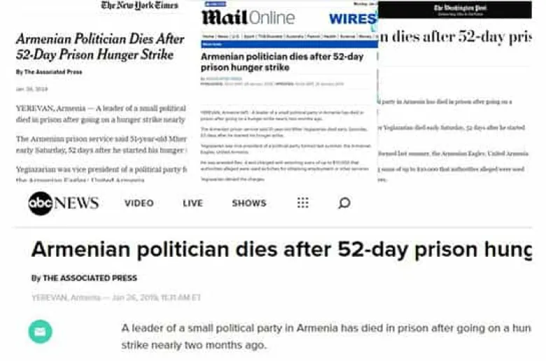 «Հայ քաղաքական գործիչը մահացել է 52 օրյա հացադուլից հետո». միջազգային հեղինակավոր պարբերականներ